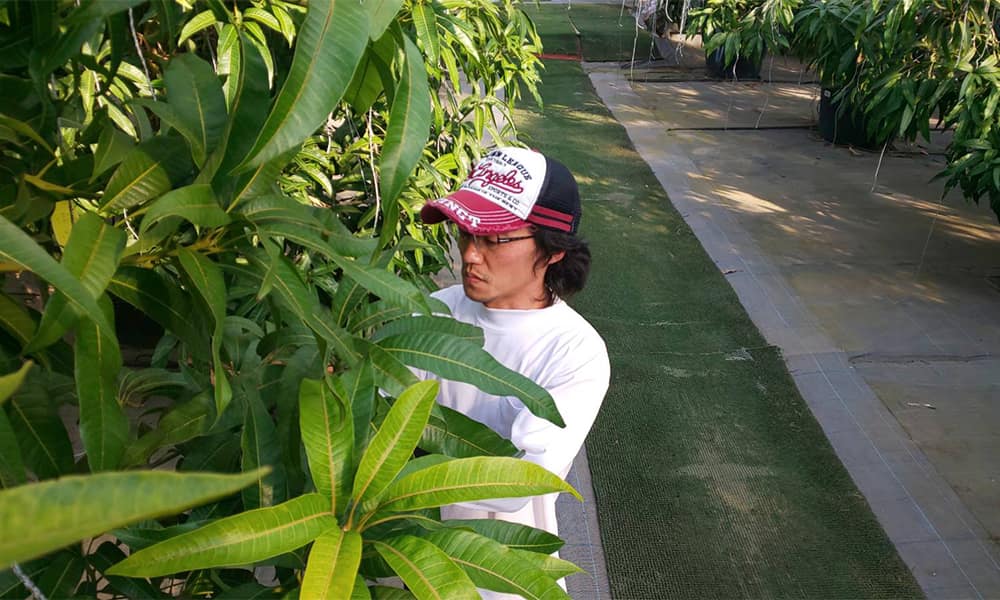 ダイヤマンゴー農園について マンゴーの木約400本、ハウスの広さおよそ4000㎡。 アーウィン キーツ 金皇 レッドキーツの4種類を栽培しており、 蜂を使った受粉を行い防草シートを引いた綺麗なハウスで栽培を行っております。 生産者のご紹介 諸星竜也 出身田方郡函南町 静岡県立田方農業高校卒業 マンゴー農家になったきっかけ 当時最先端で作られたハウスで更に珍しいマンゴーを作っている会社に興味があり就職しました。 栽培でこだわっているポイント ハウス栽培では日本で一番大きな木でたっぷり光合成させてマンゴーの糖度を上げてます。 毎年収穫前に残留農薬の検査を行い安心、安全を確かめて社員で試食を重ね味が美味しくなってきたら出荷を行います。 半田警 三島市出身 私立誠恵高等学校卒業 東芝テック株式会8年 芦ノ湖カントリークラブコース管理8年半で退職後、現在に至る。 マンゴー農家になったきっかけ 知人から[このマンゴー食ってみ?]と言われ食べてみた所、こんなおいしいフルーツがあるのかと衝撃を受けました。 早速検索したら家からほど近い場所で栽培していることを知り思わず転職しました。 栽培でこだわっているポイント ハウスの中と外の雑草などをこまめに取る事により病害虫の発生を抑制し、農薬の量を減らす減農薬栽培を心がけております。 お客様への想い 中途採用されて日が浅いですが美味しいマンゴーを作れるよう日々勉強中です。